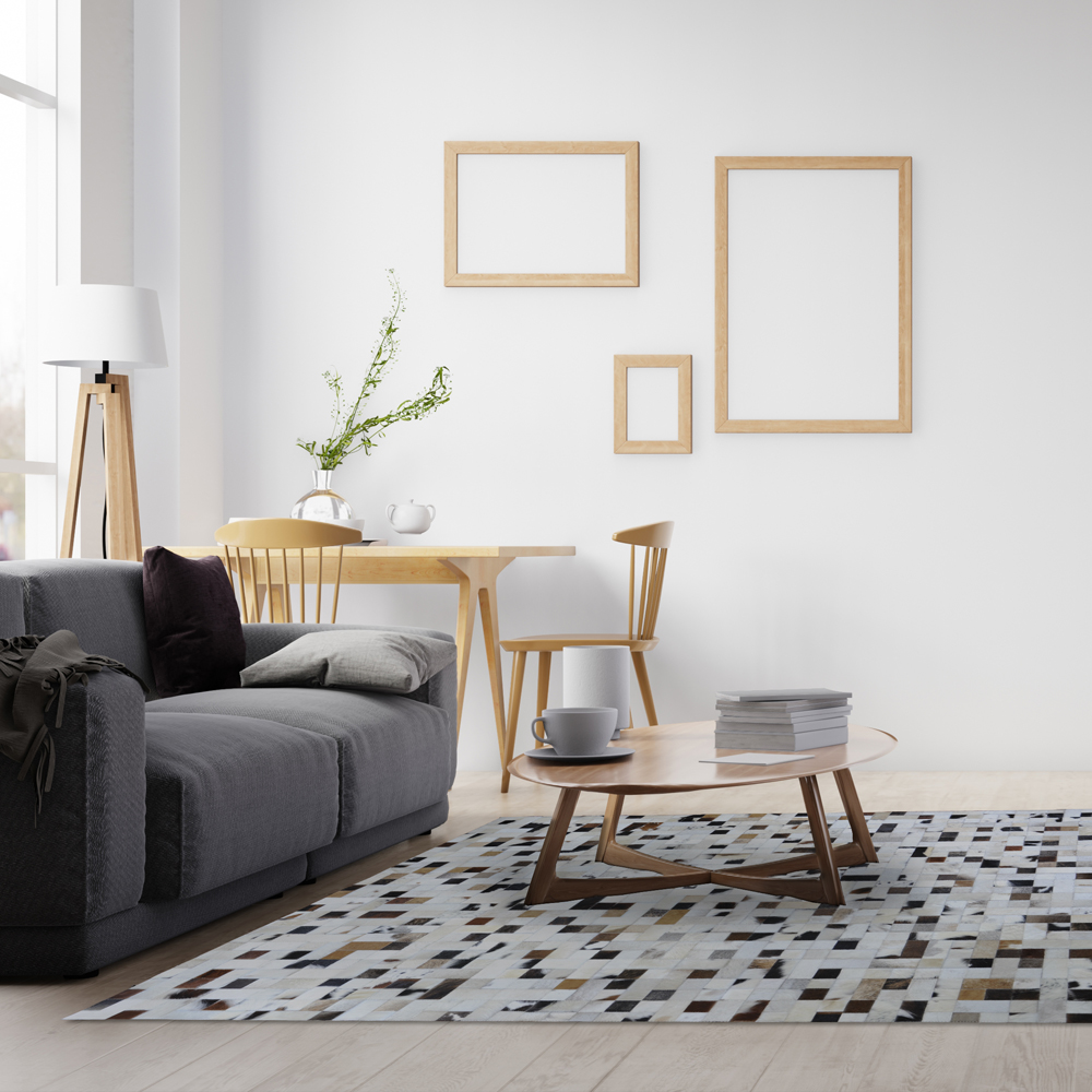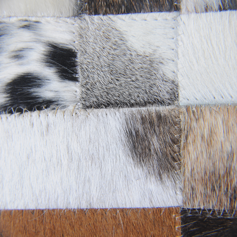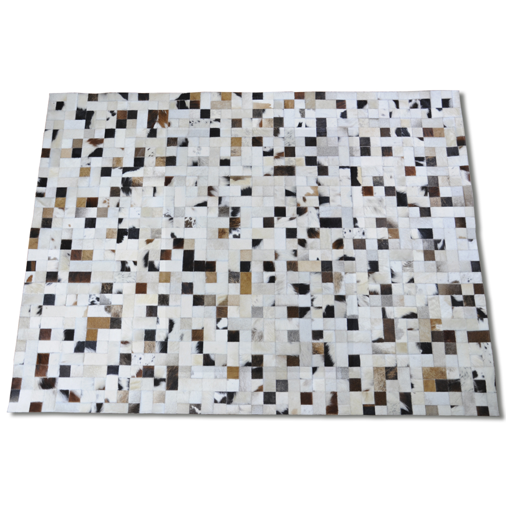 Materiales: 100% cuero, Color: Cafés, Beiges, Blancos . Backing en Latex y protector de Piso. Elaborado 100% a mano.